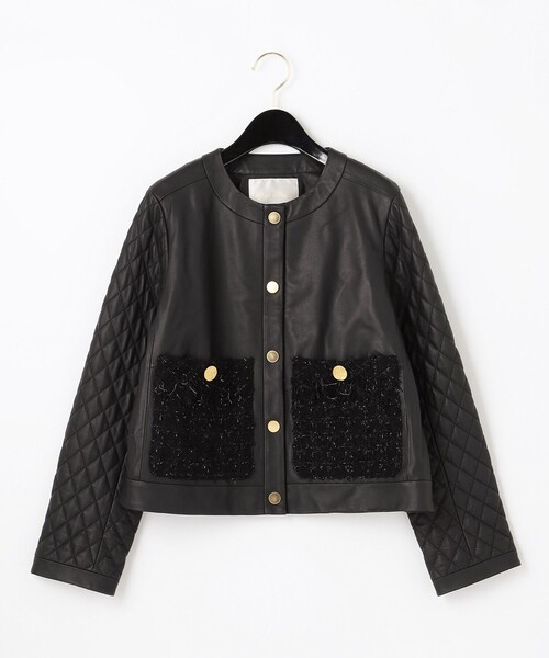 - レディース > ジャケット・アウター > GRACE CLASS ツイードポケットレザージャケット グレースコンチネンタル セール】ツイードポケットレザージャケット(ライダースジャケット