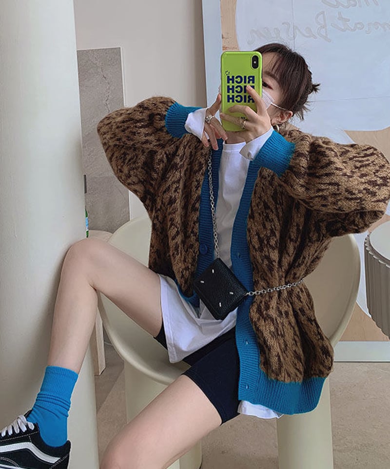 | メーカー | 【新品未使用】ブルーの大柄レオパードモヘヤメンズニット状態◎ 即納】レオパード柄モヘアニットカーディガン#ブルー |