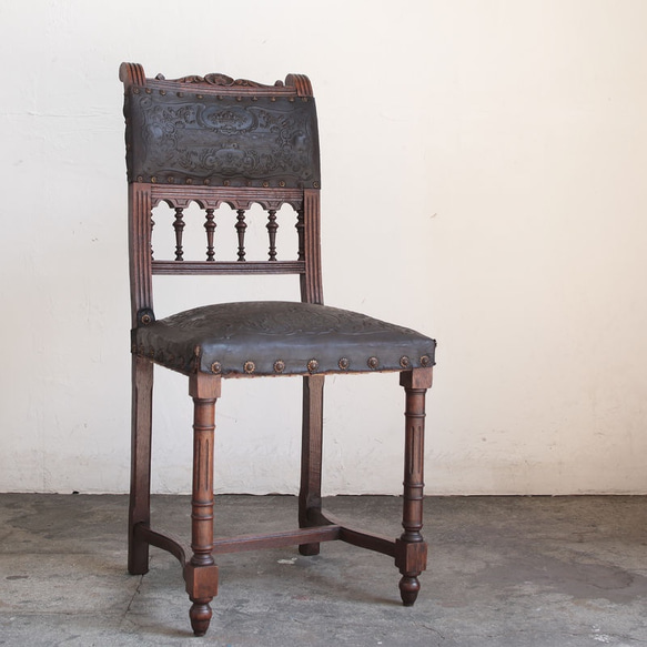 - 椅子・チェア > ダイニングチェア > フランスアンティーク木製アンリ2世様式ダイニングチェア/レザー(90-64-2) フランスアンティーク木製アンリ2世様式ダイニングチェア/レザー(90-64-1)