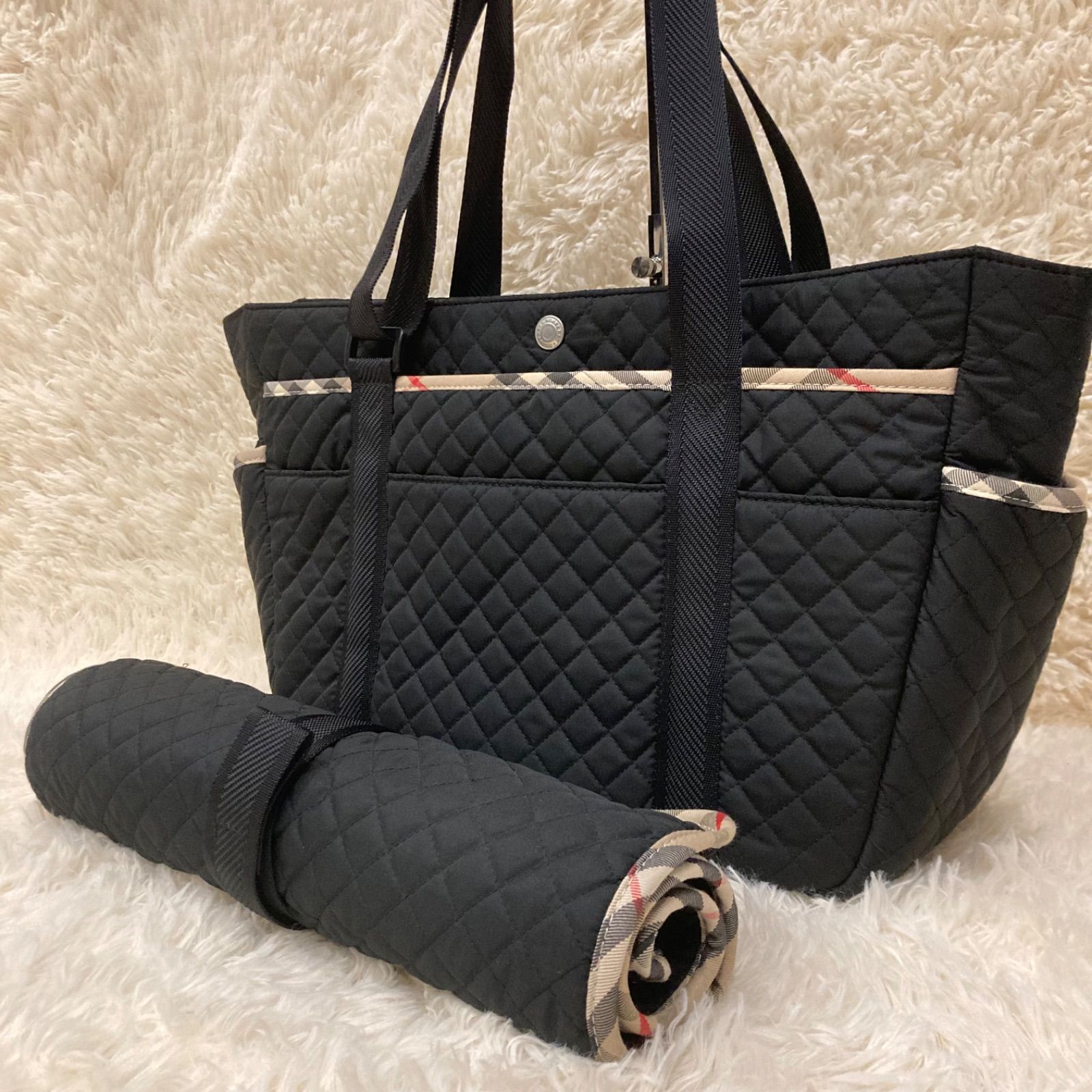 | 商品の特徴 | ✨極美品✨ バーバリー マザーズバッグ トートバッグ ノバチェック。バーバリー マザーズバッグ キルティング ノバチェック トートバッグ。バーバリー マザーズバッグ キルティング ノバチェック トートバッグ。機能性と上品さを兼ね備えた、バーバリーの人気マザーズバッグ!軽量で丈夫なキルティング素材に、さりげないノバチェックのアクセントが映える大容量トート。●ブランド:BURBERRY(バーバリー)●ライン:BURBERRY LONDON●モデル名:マザーズバッグ/トートバッグ●カラー:ブラック × ノバチェック内布・トリム●素材:ナイロンキルティング×ポリエステル×ナイロンテープ●サイズ(cm):・縦:約27・横:約48・マチ:約12・ハンドル:約12〜25(調整可能)※平置き実寸。●仕様:・外側ポケット×3(サイド×2、フロント×1)・内側ポケット×3(ファスナー×1、オープン×2)・ショルダー肩パッド付きで持ちやすい・マグネット開閉式●状態:全体的に目立つ汚れや角スレなどなく、多少の使用感のある美品です。✨極美品✨ バーバリー マザーズバッグ トートバッグ ノバチェック。お仕事・ママバッグ・通勤・旅行など、シーンを選ばず大活躍の一点です。。SOLPRESA キルティング マザーズバッグ Mサイズ。多少の誤差はご容赦ください。AmeriVINTAGE MULTI TRAVEL BAG 3/18 専用。Calin カラン マザーズバッグ 未使用品 ホワイト。●管理番号:2025051401 | ||