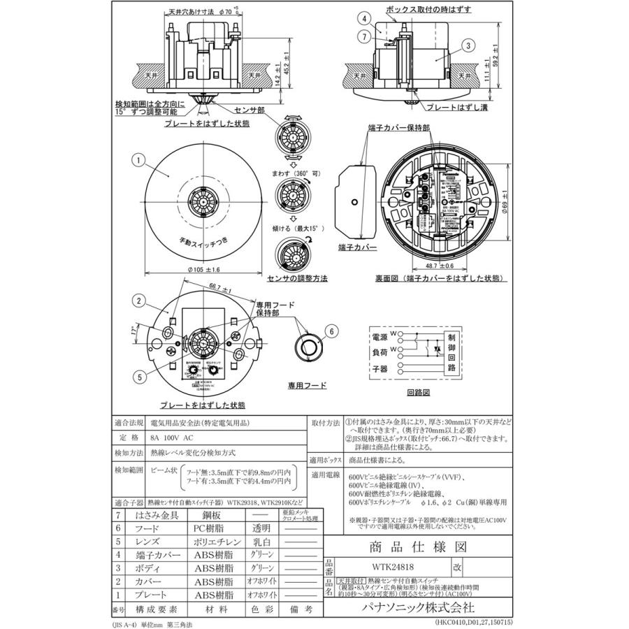 | メーカー | WTK24818 人感センサー付き自動スイッチ |