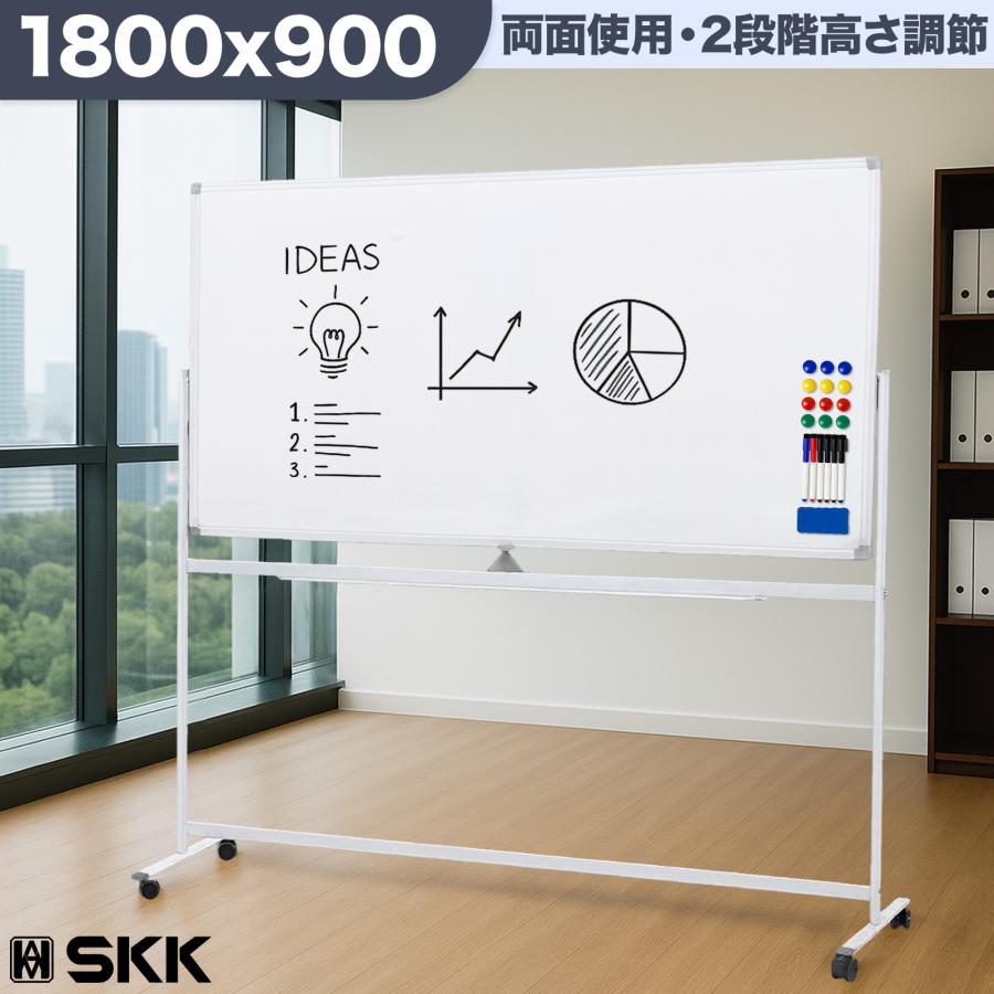 【新品】ホワイトボード 1800×900 脚付 両面 回転式 オフィス 家庭用 SKK ホワイトボード 1800×900 脚付き 両面 回転式 スチール キャスター