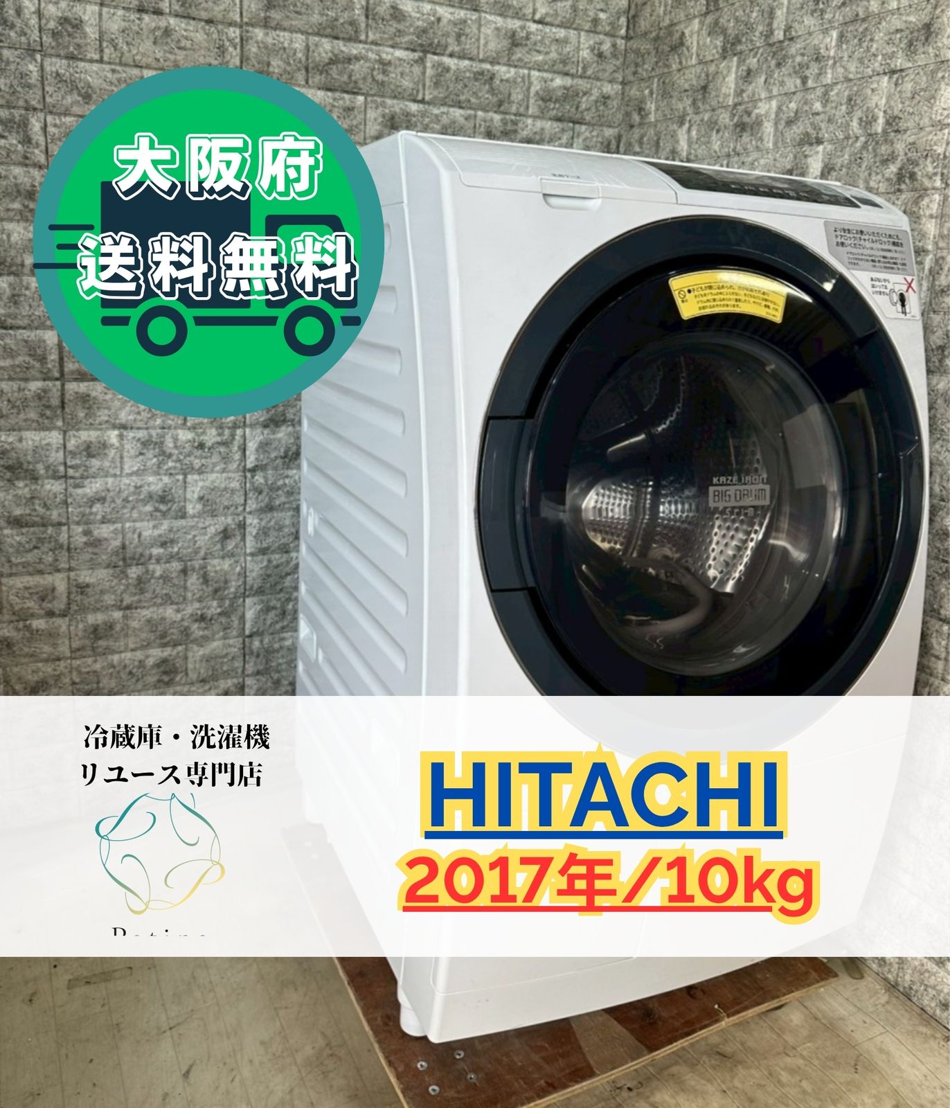 - 生活家電 > 洗濯機 > 大阪送料無料★3か月保障付き★洗濯機★2017年★BD-SG100A★S-769 大阪送料無料☆3か月保障付き☆洗濯機☆日立☆10kg☆2017年☆BD-SG100A