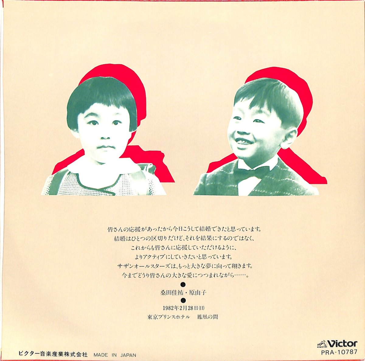 | 商品の特徴 | サザンオールスターズ / WEDDING MESSAGE(7inchシングル) | Books。WEDDING MESSAGE サザンオールスターズ 桑田佳祐 原由子 レコード。WEDDING MESSAGE サザンオールスターズ 桑田佳祐 原由子 レコード。サザンオールスターズ / WEDDING MESSAGE(7inchシングル) | Books。。ご覧いただきありがとうございますWEDDING MESSAGE桑田佳祐と原由子が結婚した際にファンクラブ会員向けに配られた引き出物となります当時3000枚ほどしか配られて居なく、現在存在するのはほんのわずかだと思います【状態】ジャケットは若干の汚れや色褪せ、折れ等ありますが気にならない程度ですレコード盤の方はとても綺麗ですが若干歪んでいます(再生可能)40年以上前の物の為、商品の保証は致しかねますノークレームノーリターンでお願いしますその他質問等は可能な限りお応えしますサザンや桑田佳祐が好きな方、如何でしょうか【予告無く出品を非公開にする場合がございます】 | ||
