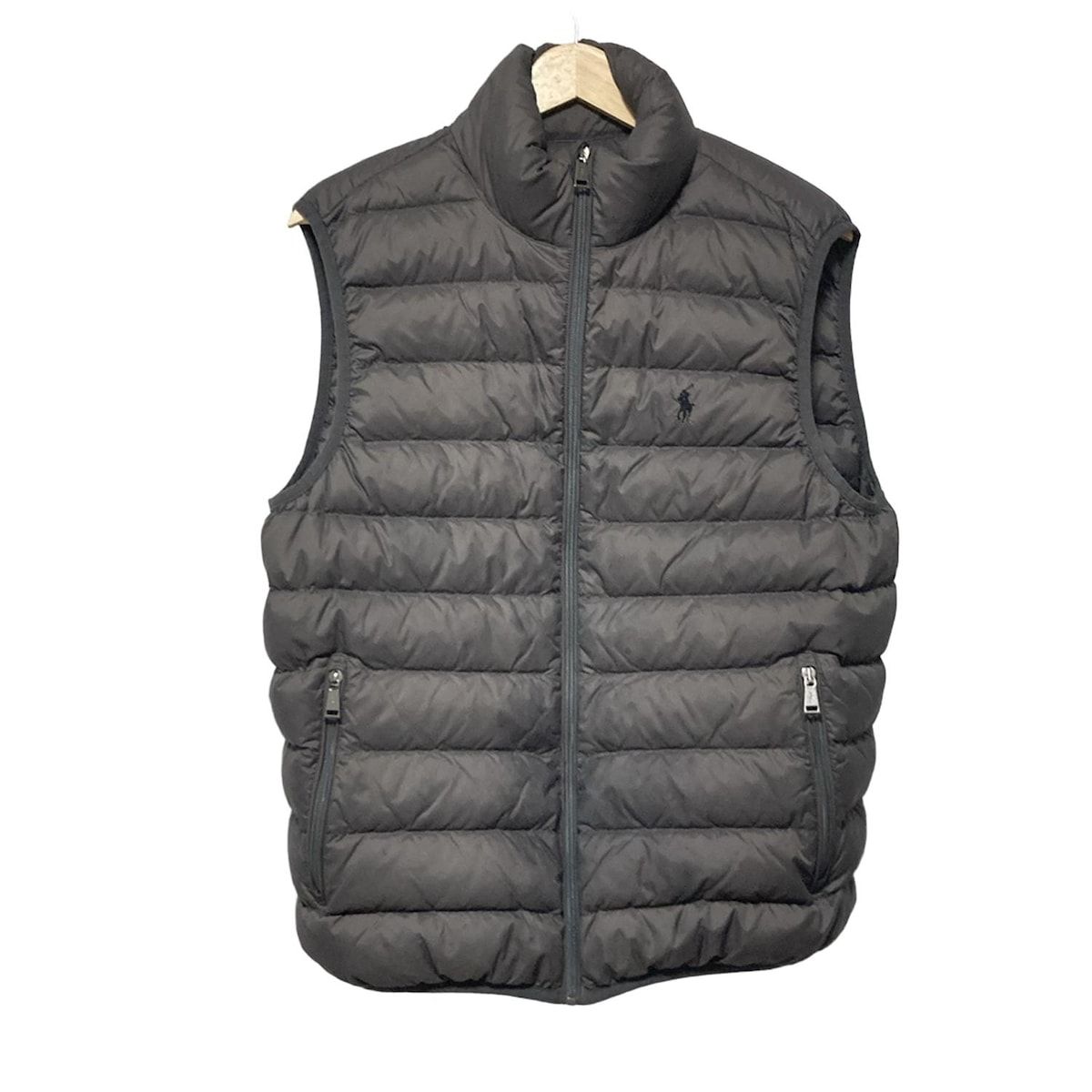 美品Polo Ralph Lauren フード付ダウンベストMポロラルフローレン POLO RALPH LAUREN フード付きダウンベスト M グレー Polo Ralph