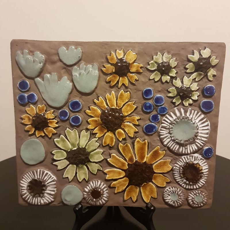 - 美術品・アンティーク・コレクション > アンティーク雑貨 > 北欧ヴィンテージ Sylvia Leuchovius 陶板プレート お花ひまわり 北欧ヴィンテージSylvia Leuchovius 陶板プレートお花ひまわり