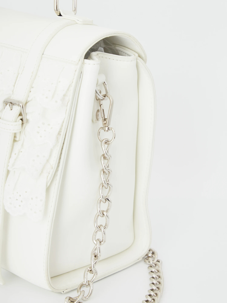 お申込番号:YNDQN449679520 /メーカー:新品未使用☆【アシーナニューヨーク】カミラレース ホワイト レースフリル合皮BAG /型番:7952076444 /JANコード:307677864 /アズワン/ナビス品番:
