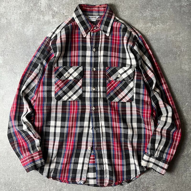 - メンズ > トップス > レアカラー 70s 80s five brother vtg ネルシャツ 70s 80s USA製 FIVE BROTHER チェック 長袖 ヘビー フランネル シャツ