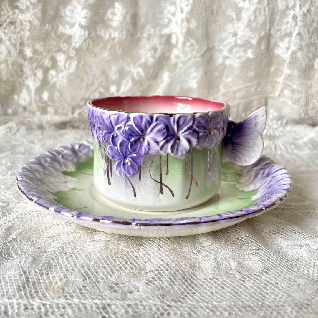 - 美術品・アンティーク・コレクション > アンティーク雑貨 > Barbotine スミレ 蝶々 カップのみ カップ Violette Amazon.co.jp: レア)蝶とすみれのバルボティーヌカップ&ソーサー