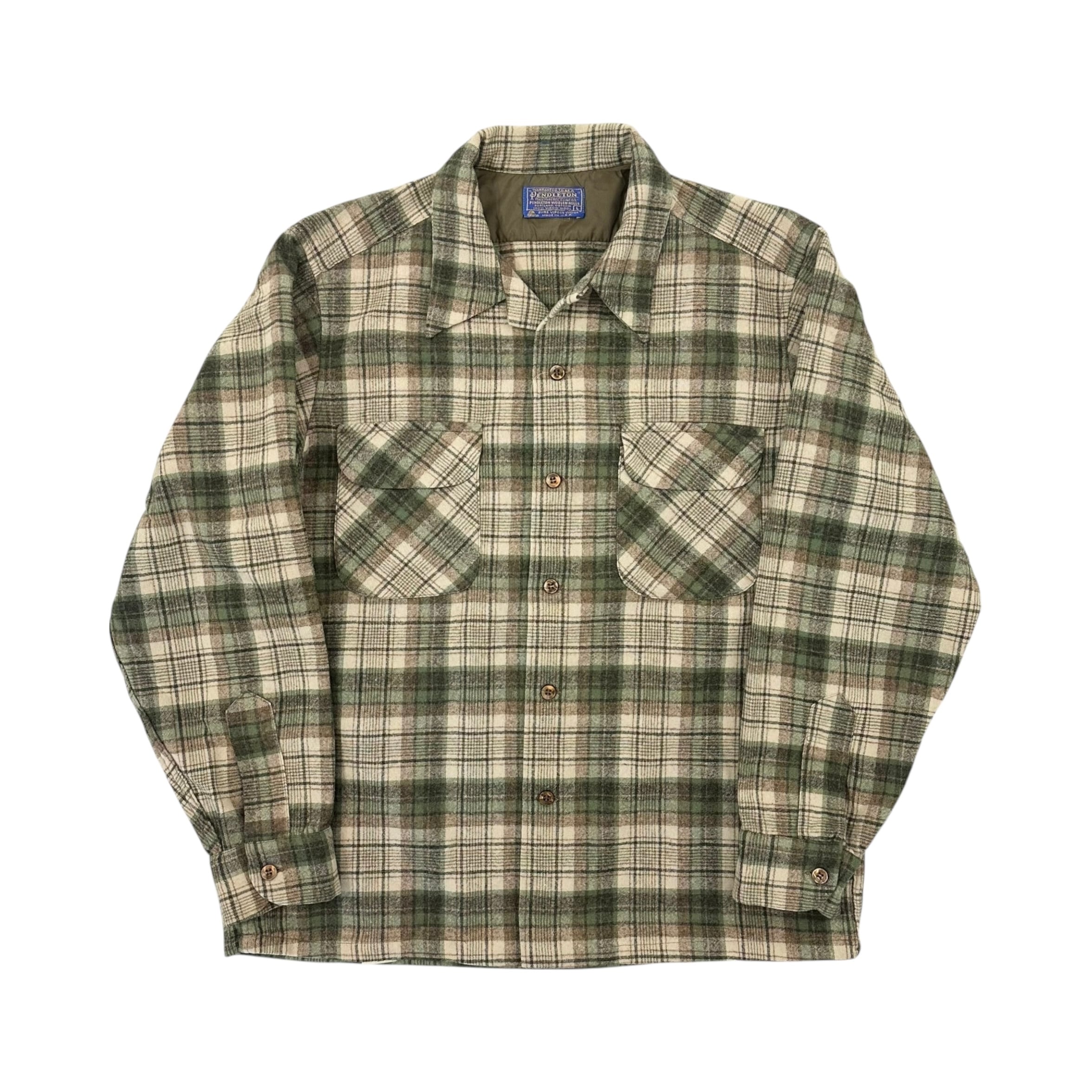 | 商品の特徴 | 70s Pendleton Boad Shirt GREEN | BerBerJin Yuhodo。70s PENDLETON ペンドルトン BOARD SHIRT オンブレ。☆ 70s PENDLETON BOARD SHIRT Size L(実寸L-XL) 肩幅49.5cm,身幅。ウール素材の青系チェック柄ネルシャツ。。70s Pendleton ボードシャツ ブラックウォッチ USA製。- ブランド: Pendleton- 色: 青系(チェック柄) オンブレ- スタイル: ネルシャツ- 素材: ウールご覧いただきありがとうございます。 | ||