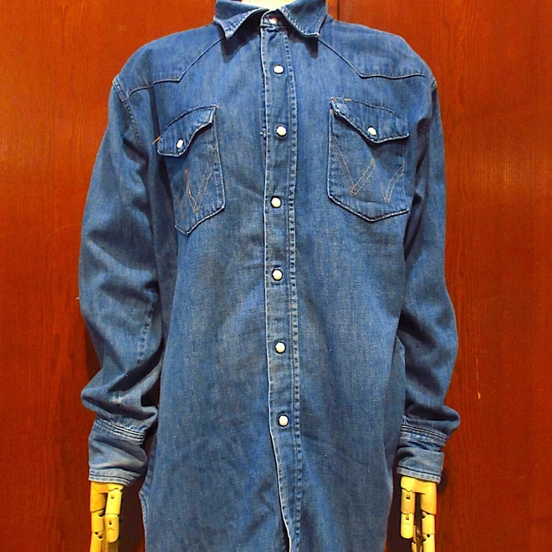 60's WRANGLER 27MW ヴィンテージ デニムシャツ 極上 美品 ビンテージ60's○Wrangler 27MWデニムウエスタンシャツsize 16 1/2-3