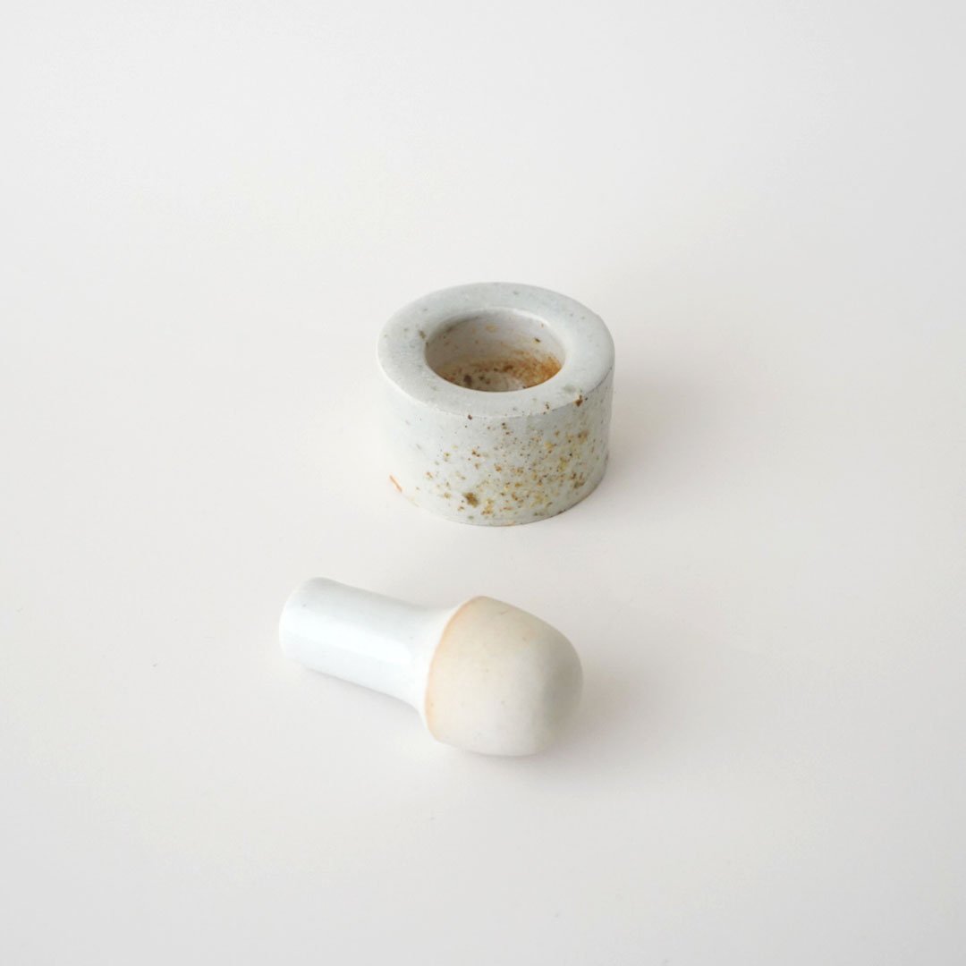 | 商品の特徴 | 壷田和宏・亜矢 / 乳鉢 | 黄魚オンラインショップ。壷田和宏・亜矢 / 乳鉢 | 黄魚オンラインショップ。壷田亜矢さん 壷田和宏さん 乳鉢 すり鉢 新品未使用品 壷田和宏・亜矢。壷田和宏さん、亜矢さんご夫妻の乳鉢です。壷田さんご夫妻の自然に寄り添った暮らしの中から生まれる器や道具が好きで、機会があれば個展に足を運ぶのですが、こちらも個展の際に購入した物です。転居に際し収納が減ったので、整理の為に出品する事にしました。大切に保管してきた未使用品の為、ニオイ移りや目につくダメージ等のない、艶やかでとても美しい良好な状態です。とても美しい天草白磁の、薪窯で焼成された乳鉢です。灰かぶりはほとんどなく、うっとりするような美しい天草白磁の白さで、しっかりと重さがあり、胴の部分を抑えてすり潰しやすくなっており、安定して使いやすいと思います。磁器なので、ニオイも移りませんし、洗うのも容易で扱いが楽な乳鉢です。カレーやタイ料理などでハーブやスパイスをすり潰す時、チャイのスパイスを合わせる時、野菜や果物をすり潰してドレッシングを作る時…など、こんな素敵な乳鉢を使ったら楽しく料理ができそうですね。食器としてテーブルに出してもおかしくない大きさで、ハーブやスパイスをすり潰してペーストを作り、この鉢の中で和えてそのままテーブルにサーブしても素敵だと思います。送料•手数料込で購入時よりお安く出品している為、交渉による値下げは考えておりません。値下げに関するコメントはご遠慮下さい。個人保管の物、また作家の手仕事の物となりますので、中古品にご理解のない方、神経質な方、お店のような完璧な物をご希望の方はご購入をご遠慮下さい。コメント、ご購入の際はプロフィールをご一読下さい。サイズ胴幅約15センチ、口径約10センチ、高さ約7.3センチすり棒の長さ約15センチcanasa安藤雅信 安倍太一村上躍岩田哲宏岩田圭介長峰菜穂子大谷哲也石岡信之 余宮隆吉田直嗣吉村和美吉田次朗 林拓児 角田淳山田洋次井山三希子 境知子村上躍小谷田潤城進自在道具東屋長谷園土楽窯寺村光輔 岡田直人 柏木千繪十場あすか 喜多村光史 叶谷真一郎 畠山雄介 こいずみみゆき 三浦ナオコ森岡由利子中本純也 辻和美三谷龍二イッタラアラビア塩麹醤油麹発酵。壷田和宏・亜矢 / 乳鉢 | 黄魚オンラインショップ。。『ゆゆ』Staub ブレイザー ソテーパン チェリー 24cm /IH対応。ル・クルーゼ シグニチャー ソースパン 16cm コースタルブルー。青木刃物 堺孝行 正夫 270 料理包丁。ストウブ ラココット de GOHAN M 16cm 黒。平和アルミ製作所 ヘイワ 圧力鍋 PC-60A 太陽の家 長岡式。ポケモンセンター限定 ピカチュウ ホーローケトル やかん 2.2リットル。Sugimoto 中華包丁。fisslerプロフィコレクション サーブパン28cm。【鞘付き】 270mm柳刃包丁 鏡面 黒檀水牛八角柄 全鋼 和包丁•。改ラーメンマイスター ポケットラーメンスープ塩濃度計。ル・クルーゼ テリーヌ型32 | ||