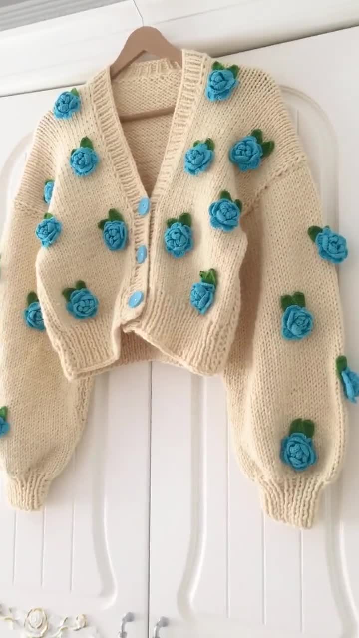 - メンズ > トップス > トップス FAKE AS FLOWERS KNIT CARDIGAN Handmade Blue Roses Knit Cardigan: Floral Crop Sweater - Etsy