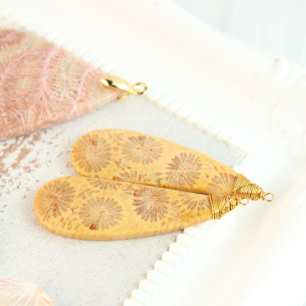 | メーカー | 天然石☆超大粒♡マーガレットフォッシルコーラル×オパールのピアス14kgf |