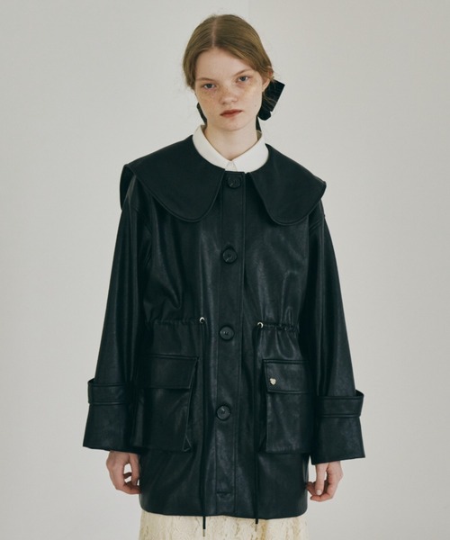 - レディース > ジャケット・アウター > idem ビッグカラーフェイクレザージャケット big collar vegan leather jacket / ビッグカラーフェイクレザー