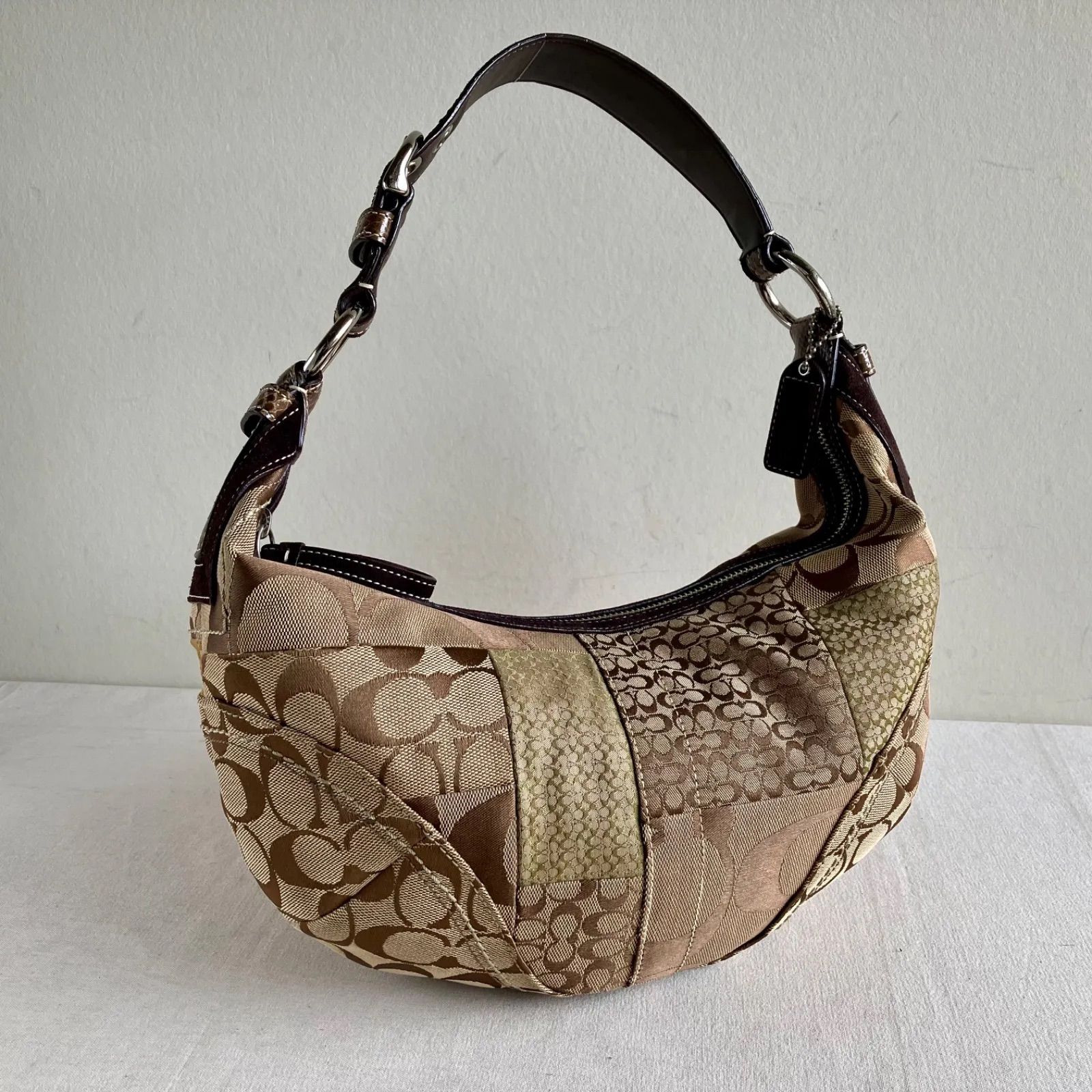 - レディース > バッグ > バッグ Vintage Coach Hobo Signature Bag Coach Vintage Patchwork Signature Brown Snake Leather Strap Hobo