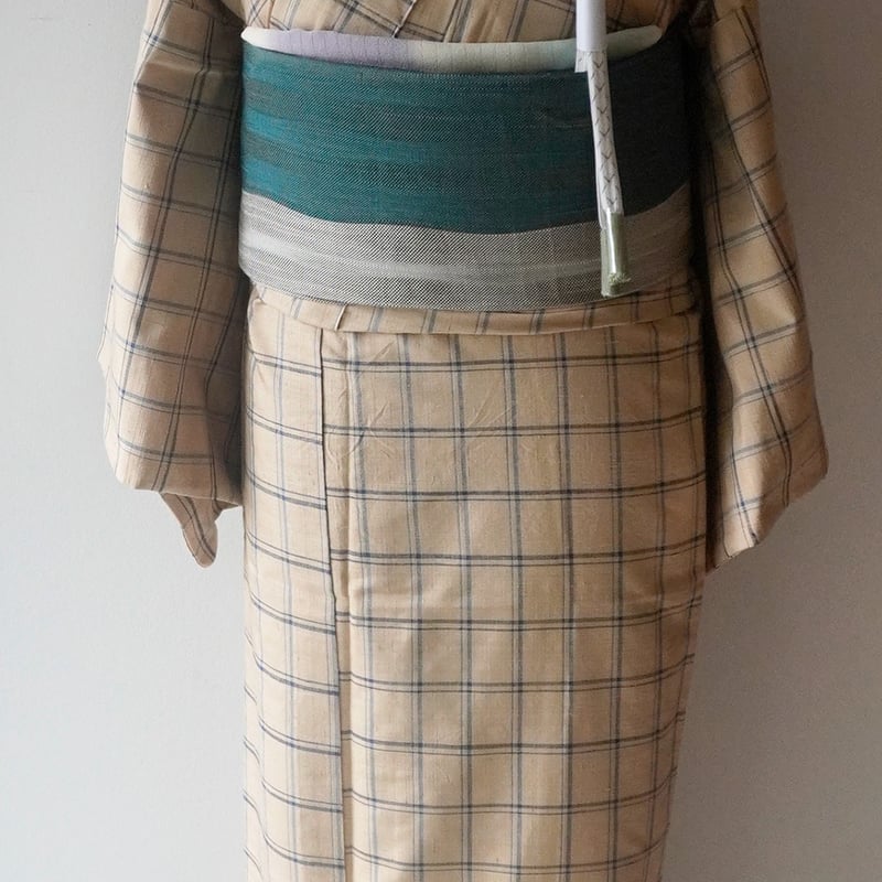 | 商品の特徴 | 未使用 単衣 紬 ベージュ系 格子 チェック 未使用 単衣 紬 ベージュ系。未使用 単衣 紬 ベージュ系 格子 チェック 未使用 単衣 紬 ベージュ系。未使用単衣紬ベージュ系格子チェック。単衣の紬の小紋です。。正絹 広衿身丈 158裄丈 63袖 48前 25後 29.5#単衣 #紬 #未使用2504124。未使用単衣紬ベージュ系格子チェック。しつけ付き未使用品になります。ベージュ系のチェック柄で、とてもカジュアルな可愛らしい着物です。誉田屋源兵衛謹製 半幅帯 芭蕉角繋 生成 半巾帯 未使用品 | ||