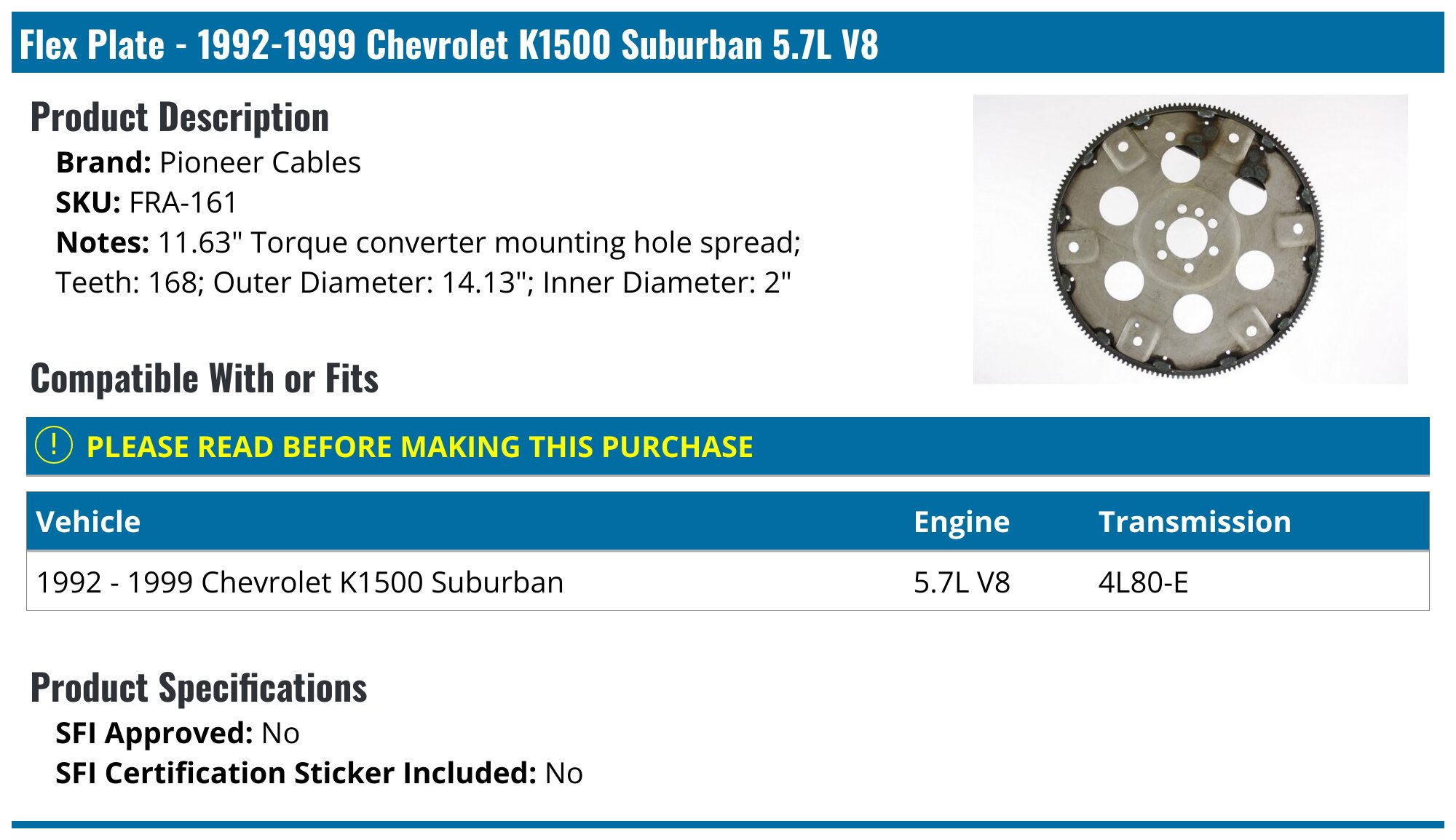 Pioneer -8900アンプ 1992-1999 Chevrolet K1500 Suburban Flex Plate - Pioneer Cables FRA