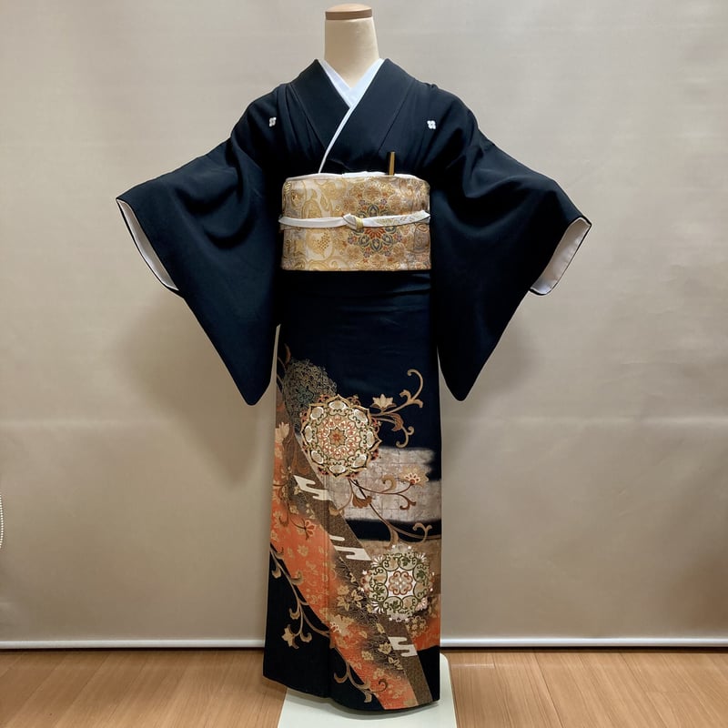 | メーカー | D808 黒留袖 花丸文 金彩 正絹 着物 袷 極美品 |