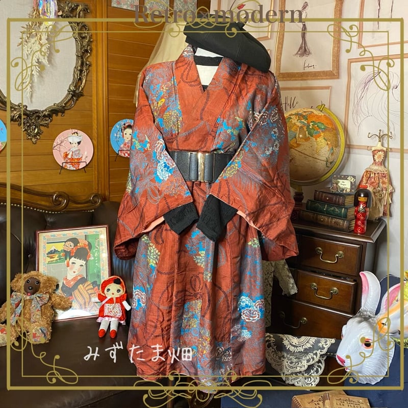 | メーカー | レトロ アンティーク 大正ロマン 孔雀 お召 着物 アンティーク着物 NO |