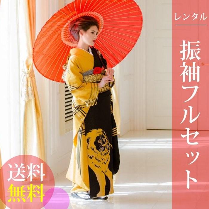 - レディース > 着物・浴衣 > 3744 振袖6点フルセット 正絹黄ブランド 成人式結婚式 トールサイズ 背高 高級正絹 振袖レンタル 送料無料 FS-094 ライオン 黄系 黒系 振袖 成人