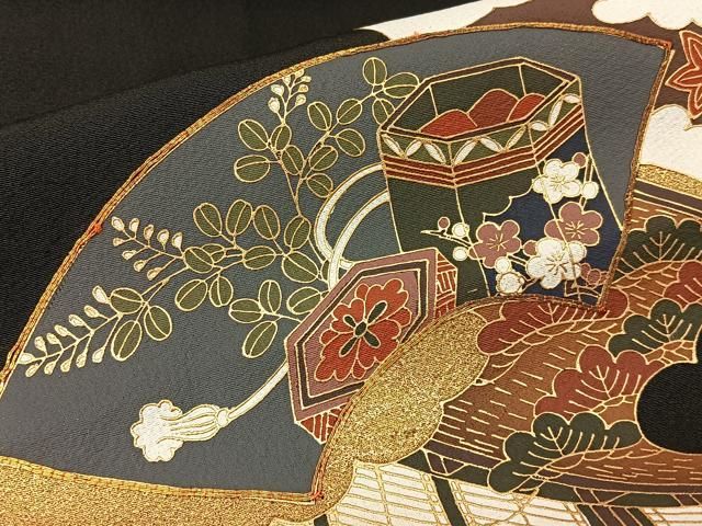 | メーカー | 正絹黒留袖 作家物 駒刺繍 文箱花鳥文 金彩⑦( 訪問着、紬、袋帯なども出品) |