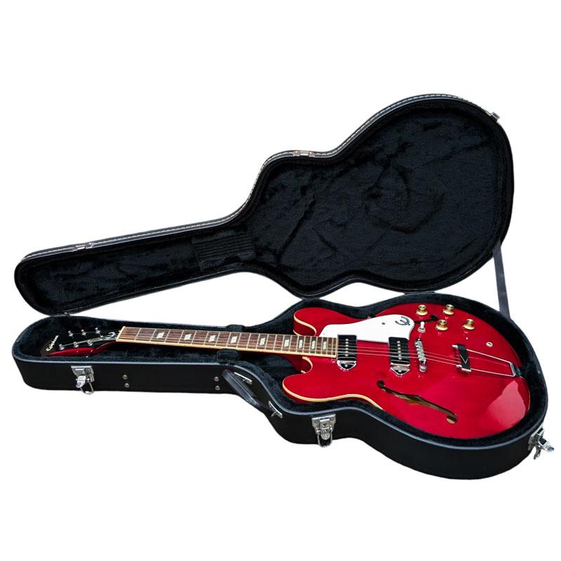 | 商品の特徴 | エピフォン カジノ Epiphone Casino ハードケース付き アンプ付き。Epiphone CASINO エピフォンカジノ ピアレス製 純正ハードケース付。Epiphone CASINO エピフォンカジノ ピアレス製 純正ハードケース付。トラスロッドカバー、ストラップピンなしネックはストレートで、フレットはほぼなしbigsbyのB6とピックアップはリアをディマジオに交換 ペグも交換リアは問題ないですが、フロントはアンプに接続して少し時間経たないと音が出ない事があります。音が出はじめたら問題なくそのまま音がでます。センターはノイズ少ないですが、リアとフロントはノイズが出ており、ブリッジ付近で共鳴音がでます。。Epiphone(エピフォン) 純正 ES339 専用 ハードケース【 ES339 Casino。。希少 charvel surfcaster エレキギター ブラック | ||