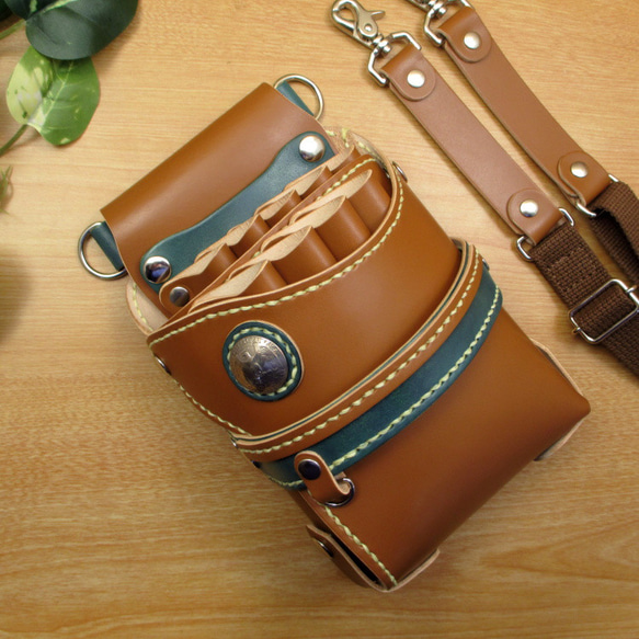 - メイクアップ > メイク道具・化粧小物 > キャメル&ディープグリーン 9丁差し 本革シザーケース SCA-243/CCA 本革 ハンドメイド 9丁差し シザーケース (キャメル×ディープグリーン