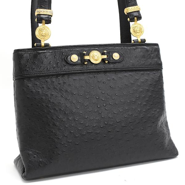 | メーカー | 【極美品】ヴェルサーチ バニティバッグ オーストリッチ レザー サンバースト 黒 極美品】ヴェルサーチ |