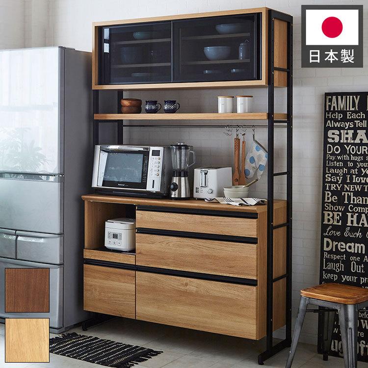 愛*送料込 引取値引有り キッチンボード 収納 戸棚 食器棚 レンジボード 食器棚 124cm幅 コテツ キッチンボード 幅124 奥行48 高さ196 木目