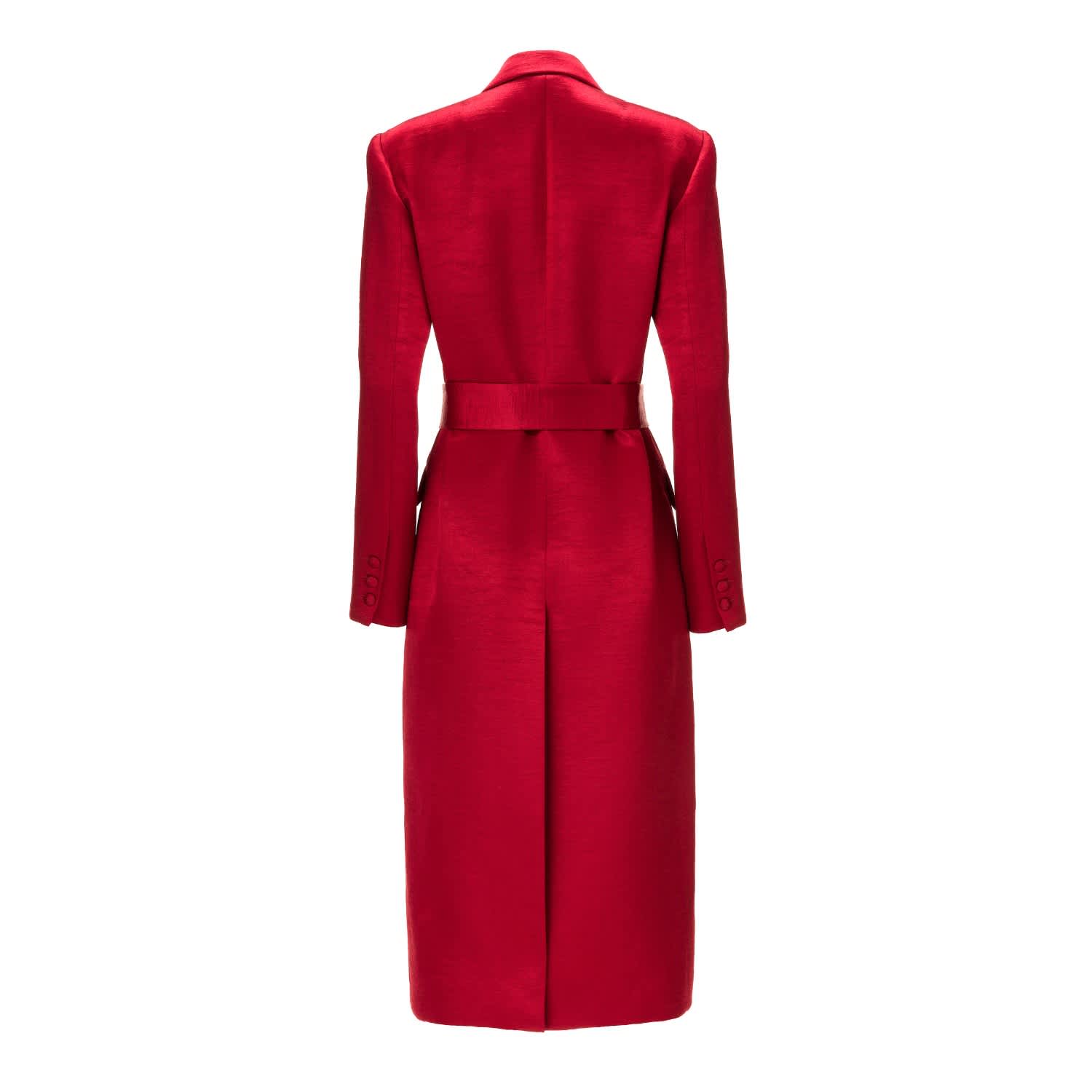 【Lou Andrea】Belted Coat Belted Midi Trench Coat In Red Satin Blend | LITA COUTURE | Wolf