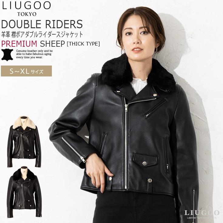 - メンズ > ジャケット・アウター > Liugoo Leathers ボア レザージャケット 本革 ライダース LL Liugoo Leathers LIUGOO 本革 襟ボアダブルライダース レディース