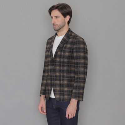 | 商品の特徴 | FLEX JERSEY】スライバーチェックジャケット。セール】 【FLEX JERSEY】スライバーチェックジャケット (ノーカラー。ブラウン 【働ラク肩ラクスーツ】ウールライク ジャケット 1つボタン。。ご覧いただき、ありがとうございますマッキントッシュロンドンの定番商品FLEX JERSEYのスライバージャケット新品、未使用、タグ付きです着やすく、軽く、お洒落なデザインご検討ください■価格:79,200円(税込)■サイズ:40LL(やや幅広のL相当)└肩幅46.5 身幅54.5 袖丈61.5 着丈73■生地ポリエステル68% アクリル20% 毛12%■色:ブラウン×ブラック■デザイン・総裏仕立て・フロント2つボタン・サイドベンツ・袖先4つボタン■詳細「FLEX JERSEY」は、伸縮性のあるジャージー素材を使いながらも、「NEW BRIDGE」のモデルをテーラリングの技術を活かし仕立てた、楽であることときちんと感を両立させた革新的なモデルジャージー素材のリラックスさと、布帛仕立てのキチンとさを活かしたブランドを代表するシリーズで、ニットカーディガンを羽織っているような柔らかさとリラックスした雰囲気が特徴糸の生産工程で繊維を平行に揃え、伸ばしてできた糸になる直前の撚りのないロ-プ状の繊維の束「スライバー」を、専用の編み機で芯糸に絡ませながら編立てて、起毛仕上げしたものがスライバーニット。ブラウン 【LASELASE(ラセラセ)】テーラードダブルジャケット。この製法による先染めのチェックジャケットは空気を多く含むため、ボリュームがありながら軽量で柔らかく暖かいのが特徴編地なので伸縮性にも優れており、さらに裏地にもストレッチ素材を使用しているので、ストレスフリーな着心地に仕上がっており、ビジネスシーンはもちろん、オフの日のきれいめジャケットにも最適な一着です汚れ・破れ・臭いなど...なし季節...秋冬素材...ウール(冬素材)柄...チェックカラー...ブラウン系 | ||
